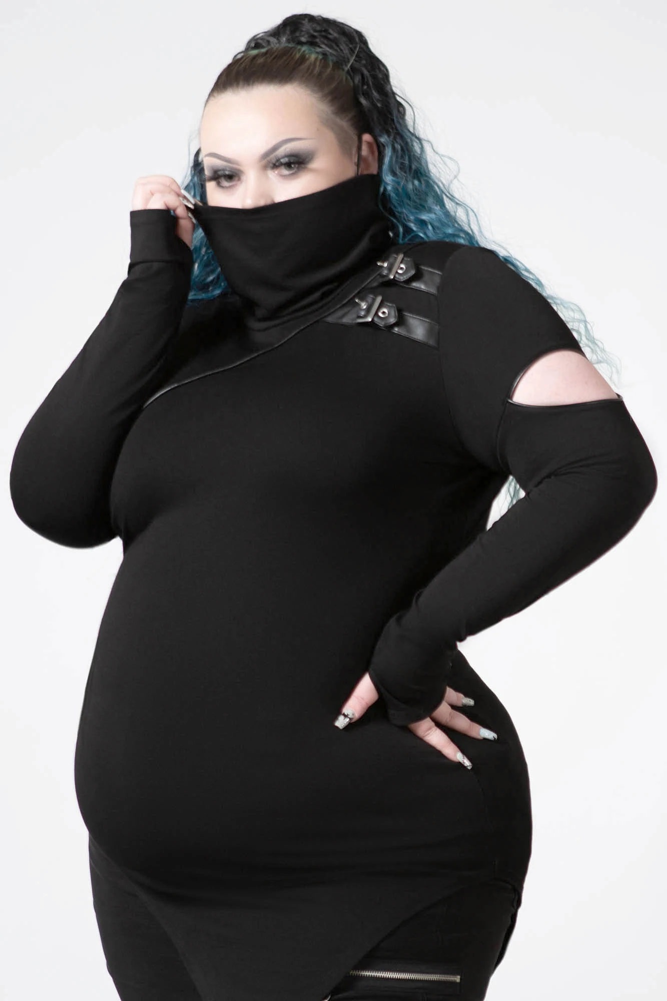 Be ready to take on the elements in our ‘Arch Angelz’ masked top. Conjured from a soft material for a comfortable but flattering bit. Featuring long sleeves with cut-out accents, metal buckles and mask detail. This must-have top is a dream to style and will have you feeling like a badass babe all day!