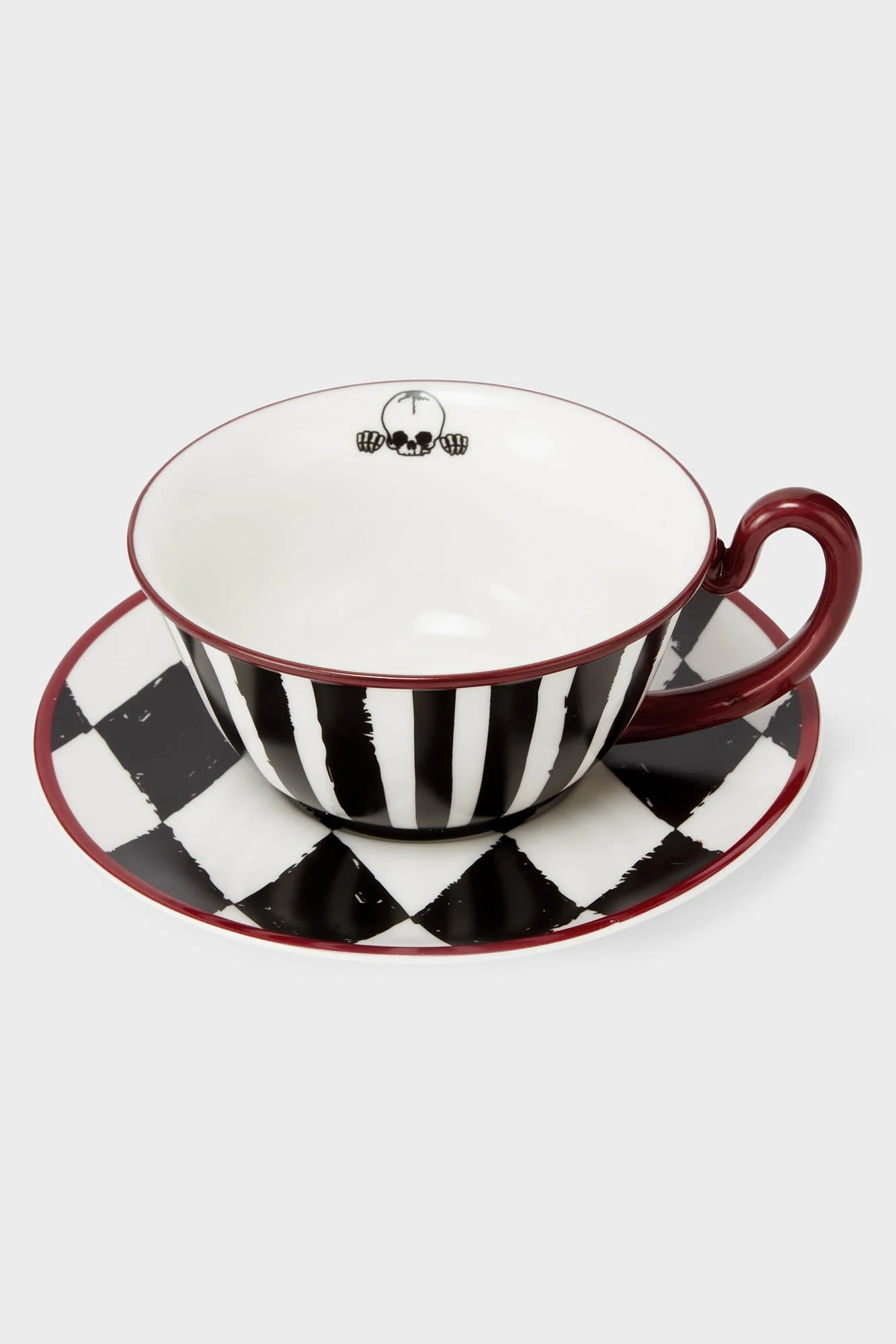 – Statement ceramic teacup and saucer set.