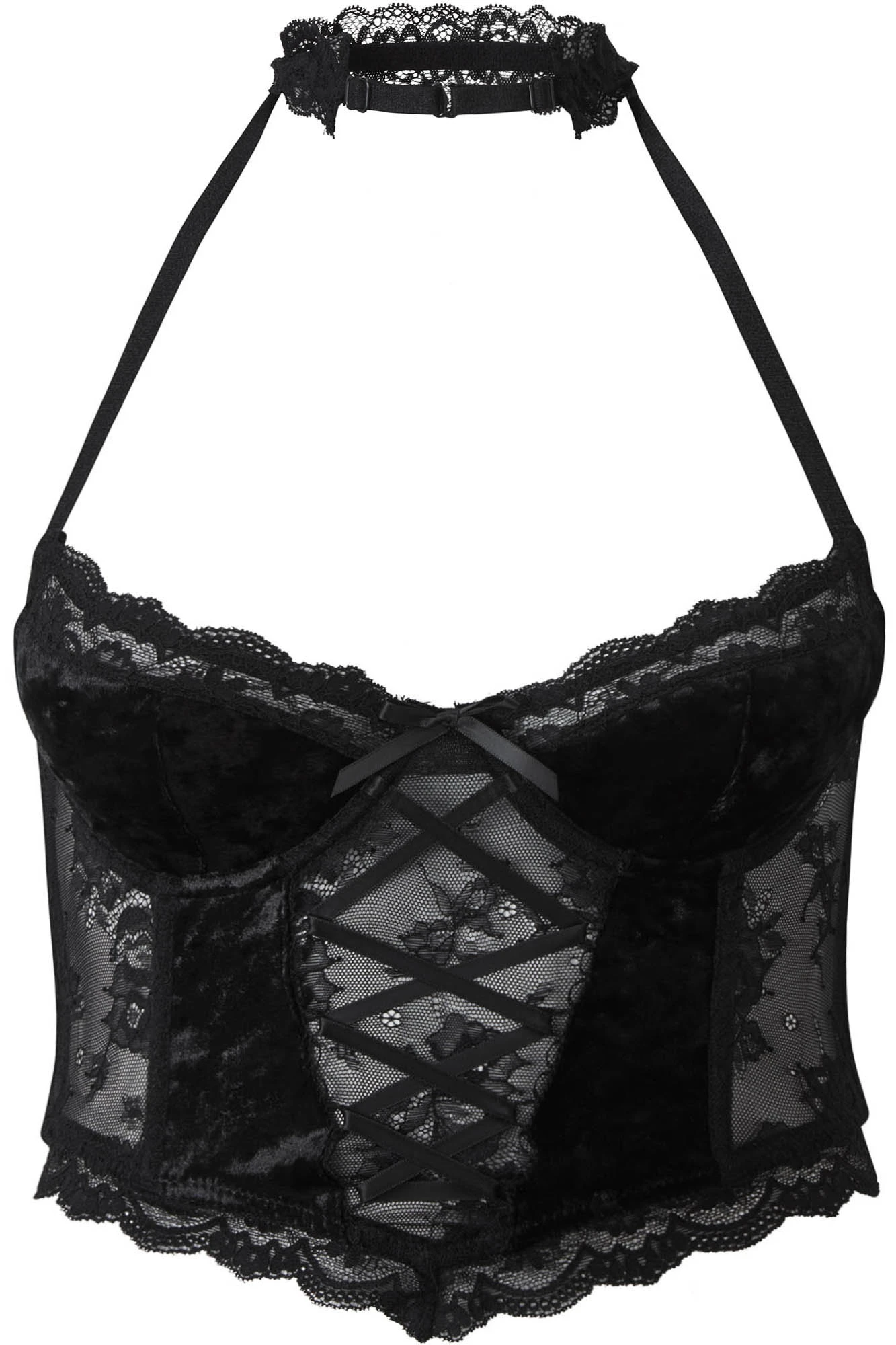 Which sin did you commit today? Fall in lust with our ‘Cardinal Sins’ Bralet and awaken yer inner temptress. Crafted using a super-stretch lace and delicately divine velvet for a sultry and flawless fit. No detail has been missed – finished with high neckline, intricate lace trims, lace-up detailing and a hook-and-eye fastening on the back. A bewitching statement piece – bound to make even the dark lord take notice.