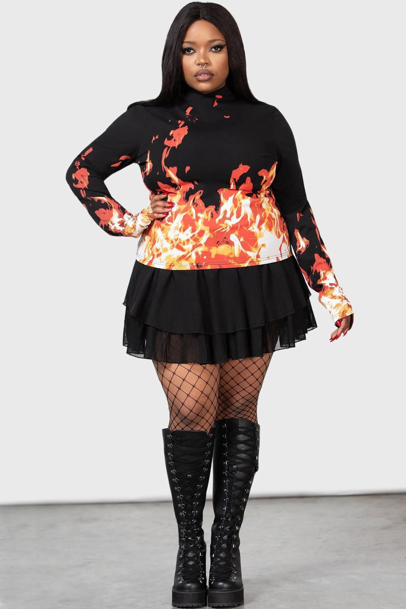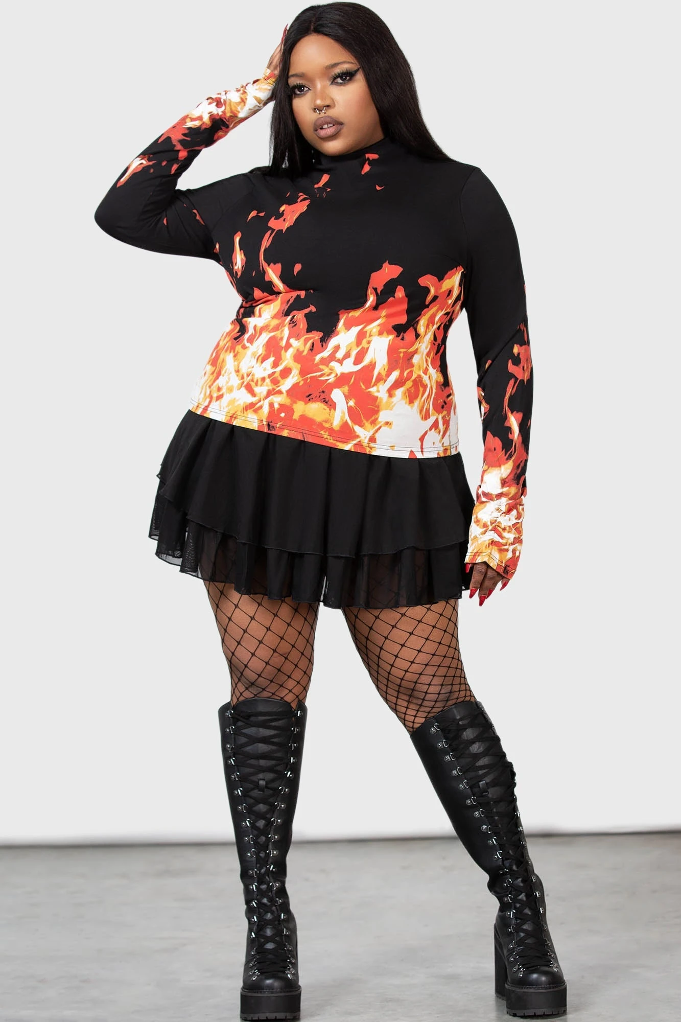 – Long sleeves with flame print.
