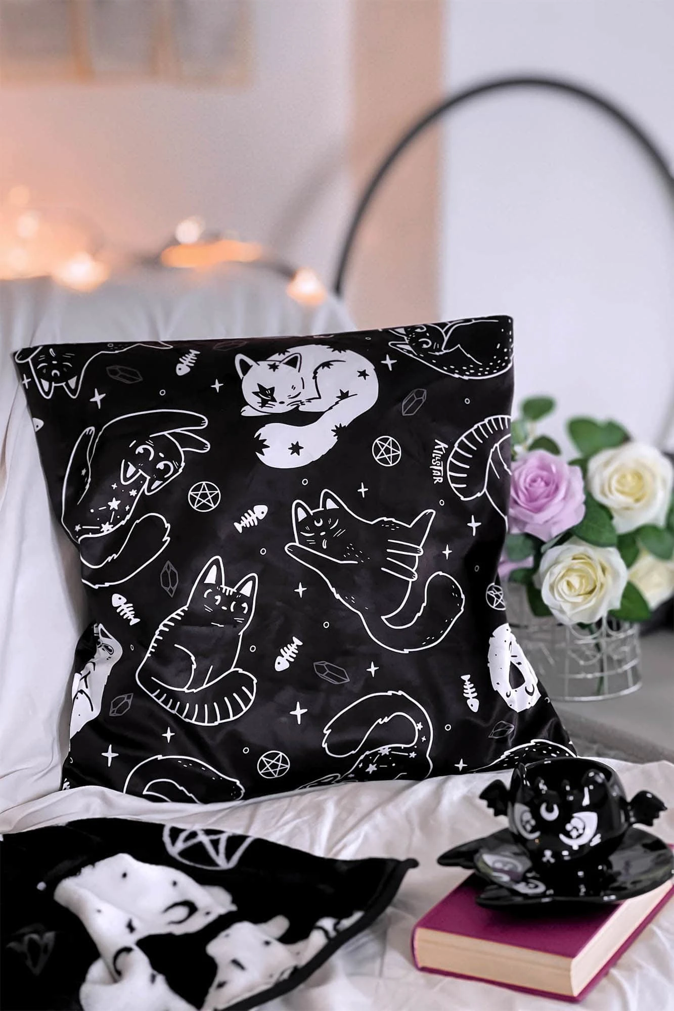 Complete your dream crypt with the super cute ‘Catnap’ cushion cover. Made from a soft fabric; featuring statement graphic print and zip to one side. Large size – ideal for decorating your bed, couch or get a few to scatter around your ritual circle.