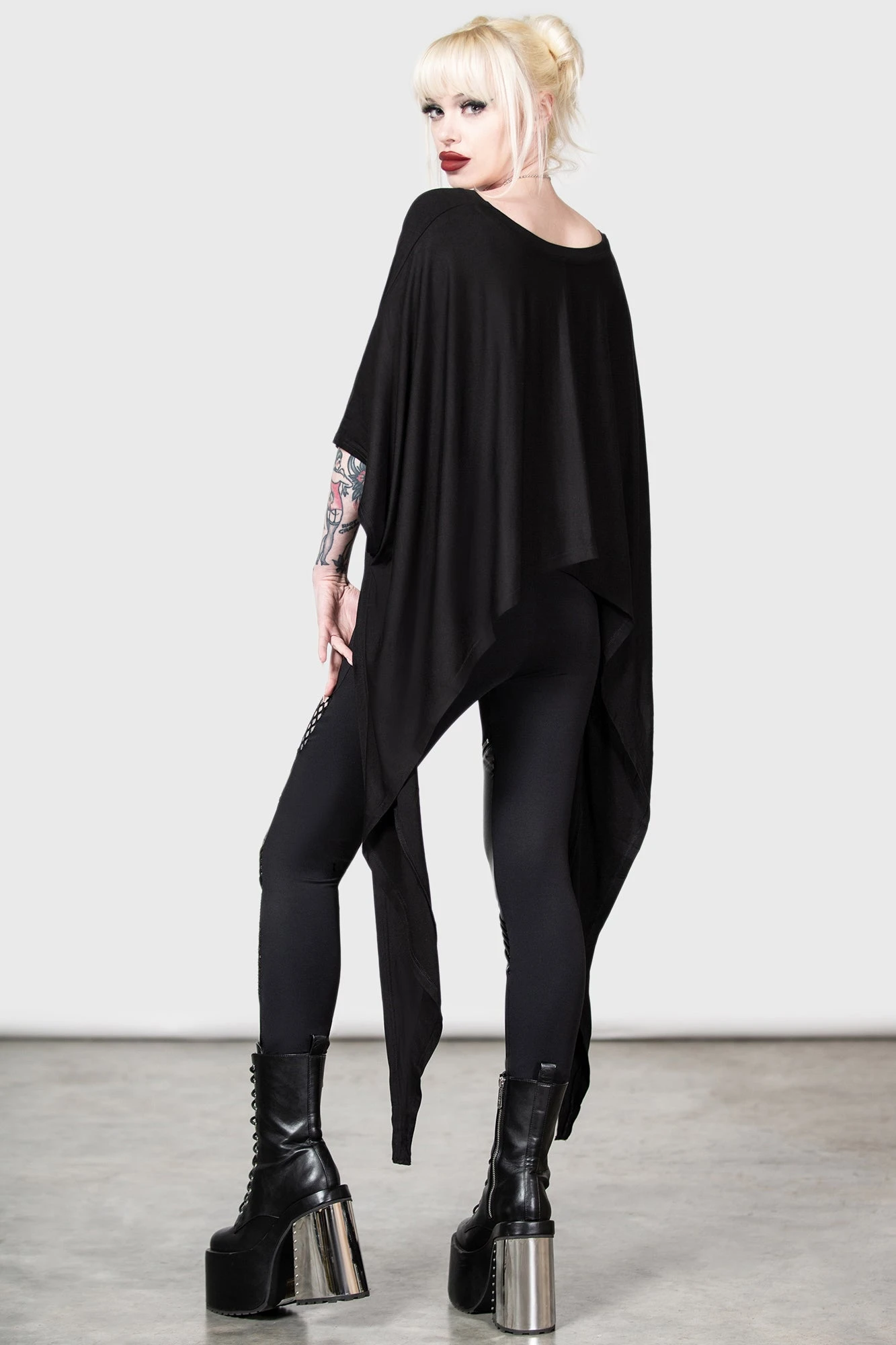 It’s a dark paradise! Getting down and spooky with the ‘Celestial Bodies’ statement top; an oversized body made of the softest stretch-jersey – that flows with movement perfectly! Complete with extra wide neck, slightly cropped body with wide sleeves and exaggerated hanky hems! Perfect for club visitations, infernal affairs and leaving the crypt at dusk/dawn.