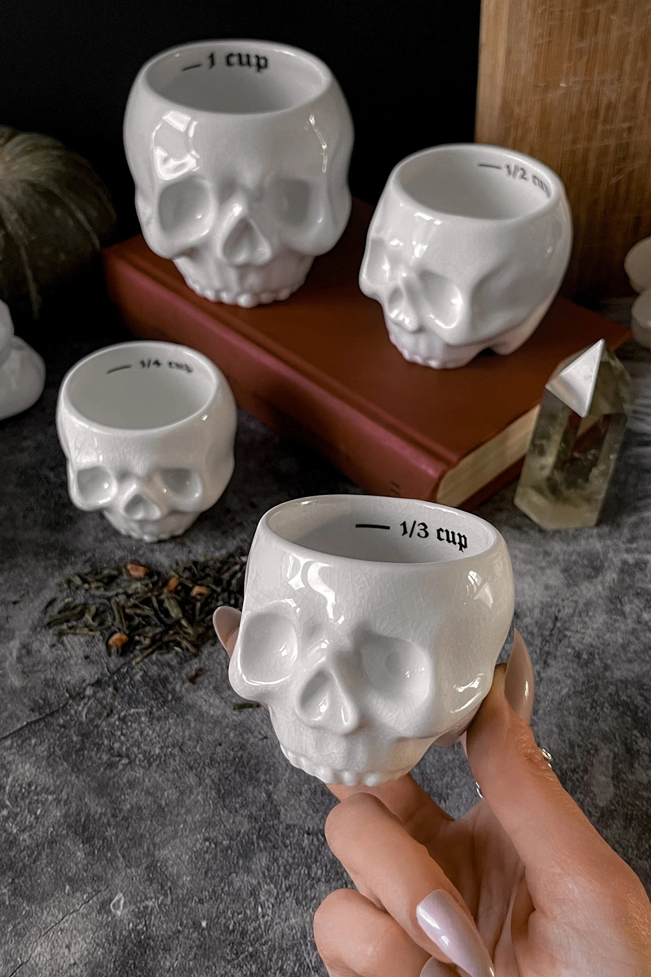 – Statement ceramic measuring cups.