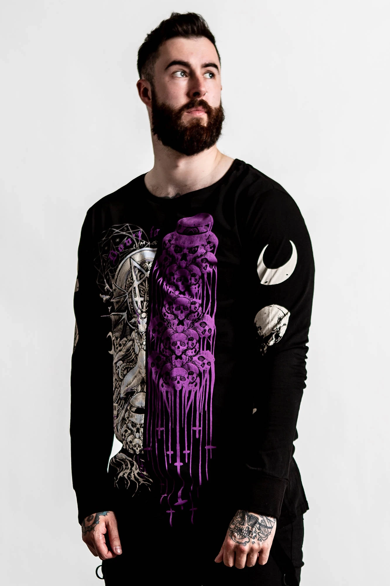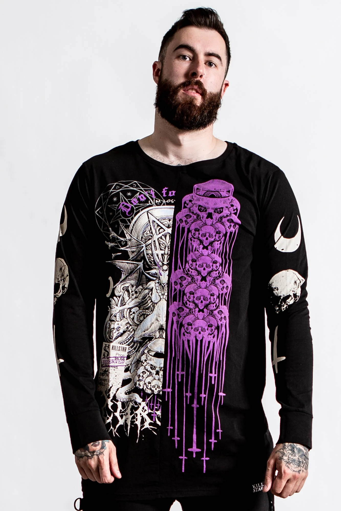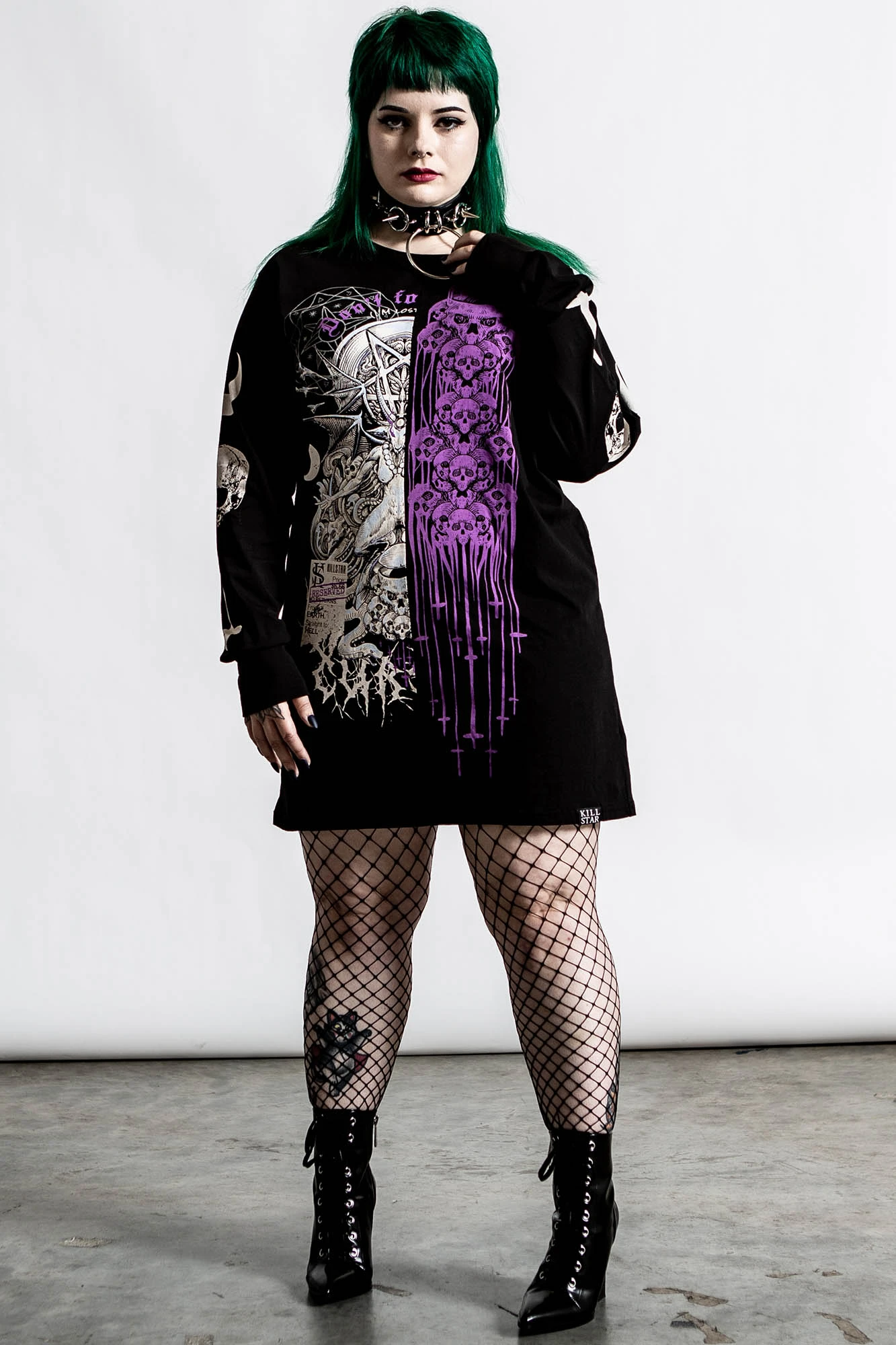 Let’s howl at the moon tonight! The ‘Cursed’ split long sleeve top – is summoned from soft-stretch cotton mix for a flattering yet comfortable fit. With a round neck, split design and statement print on the front and sleeves. A perfect piece to wear on its own for some extra drama! Ready for nights out [or in..], holiday hauntings, or perhaps a hot date!