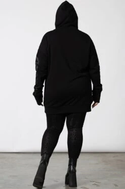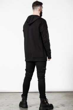 Look hotter than hell in our ‘Damned’ Hoodie. Conjured from soft jersey featuring a bold statement print on the front and sleeves and silver metal hard wear to add some extra edge.