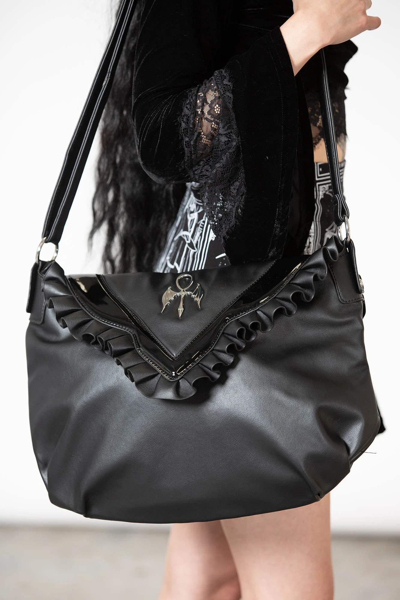 – Soft, faux leather handbag.