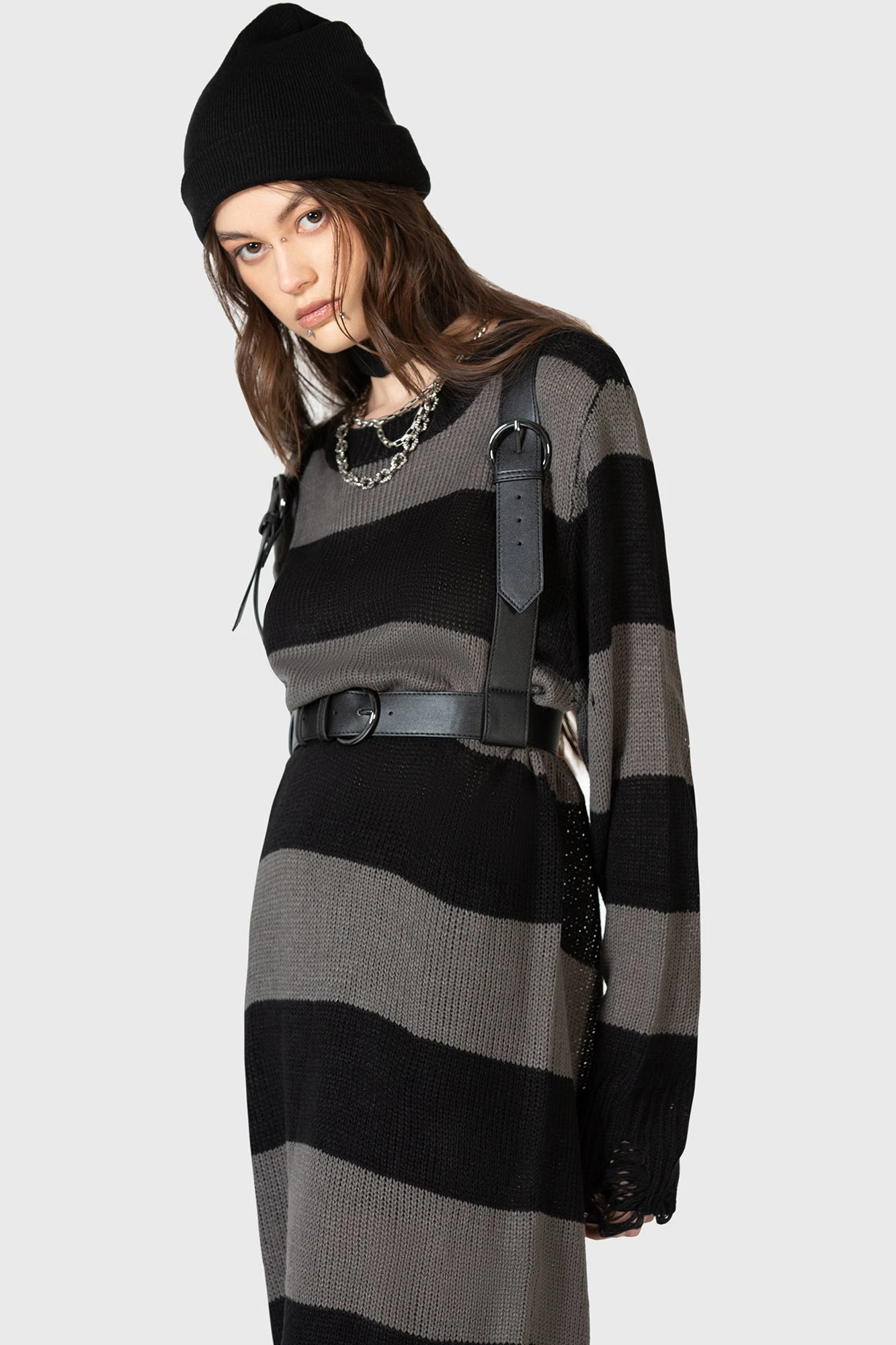 – Statement textured PU harness.