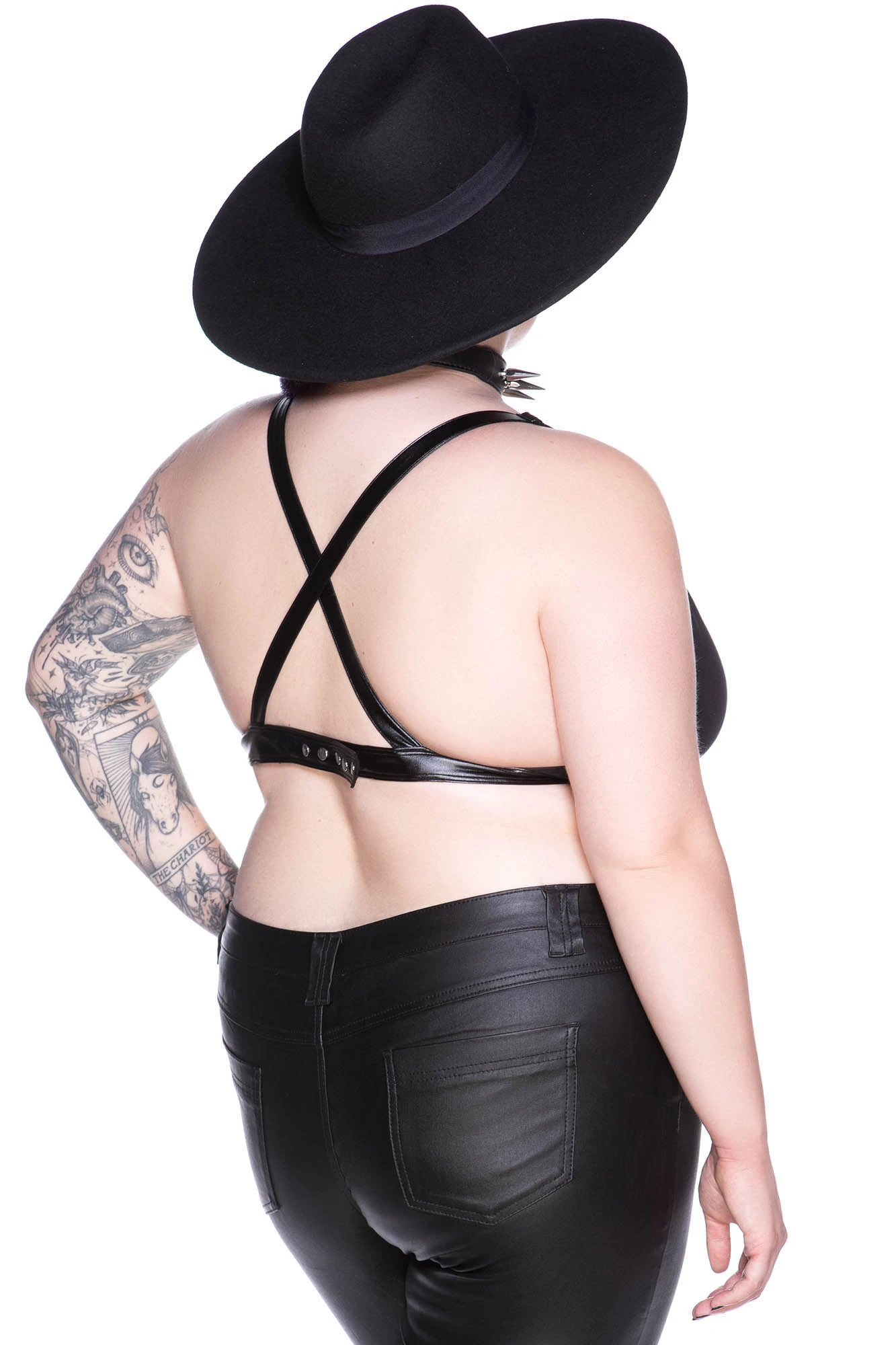 Don’t fear the fall – just get back up or you risk not getting anywhere at all. Hot AF ‘Dusted’ halter top in a soft fabric; tie halter neck with silver pentagram hardware and studs. Purrfect for your adding some oh-la-la to your black-on-black wardrobe.
