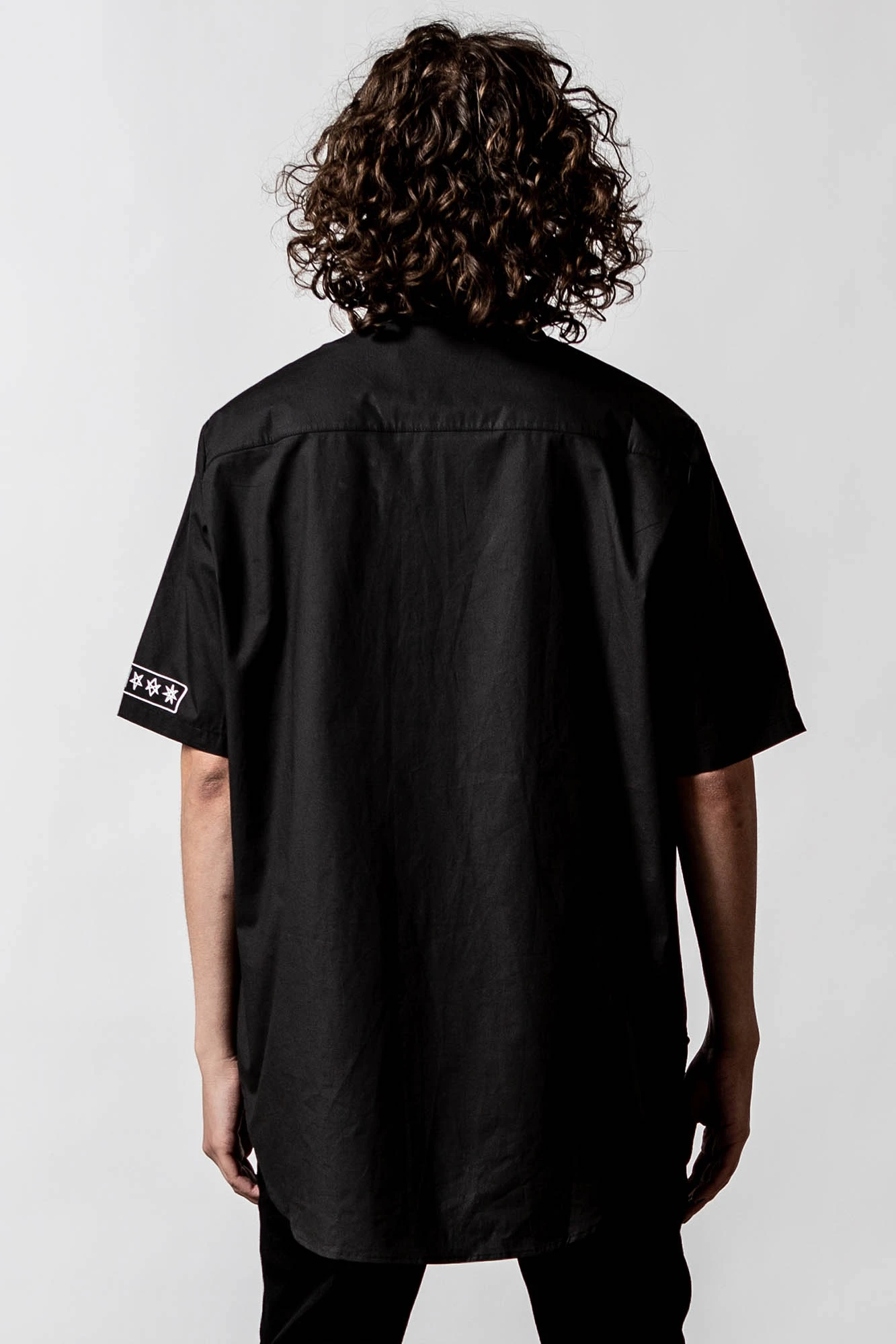 Channel some serious vibes in our ‘Insomnia’ longline shirt, with fitted lines to keep it smart with some killer details. In a soft fabric with collar, statement print on chest and sleeve, and some extra length.