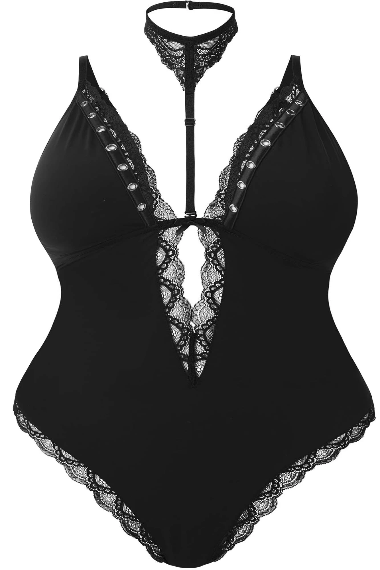 Be a siren of seduction in our ‘Lorlei’ bodysuit. Crafted in soft stretch fabric with adjustable elastic straps for the perfect fit, metal rivet details and finished with detachable lace choker. Perfect for play dates with the devil, dancing barefoot under the moon or a coven sleepover.