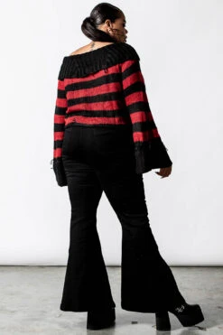 Look cute as hell in the ‘Nightmare’ knit sweater; conjured using a super-soft fabric for a flattering yet comfortable fit. Features a bardot neckline, statement contrasting stripes and crop style – no detail has been spared! This creepy lil staple piece is a dream to style and looks great with all your fav lookz! Purrrfect for a day out with yer Coven or picnics by the moon!