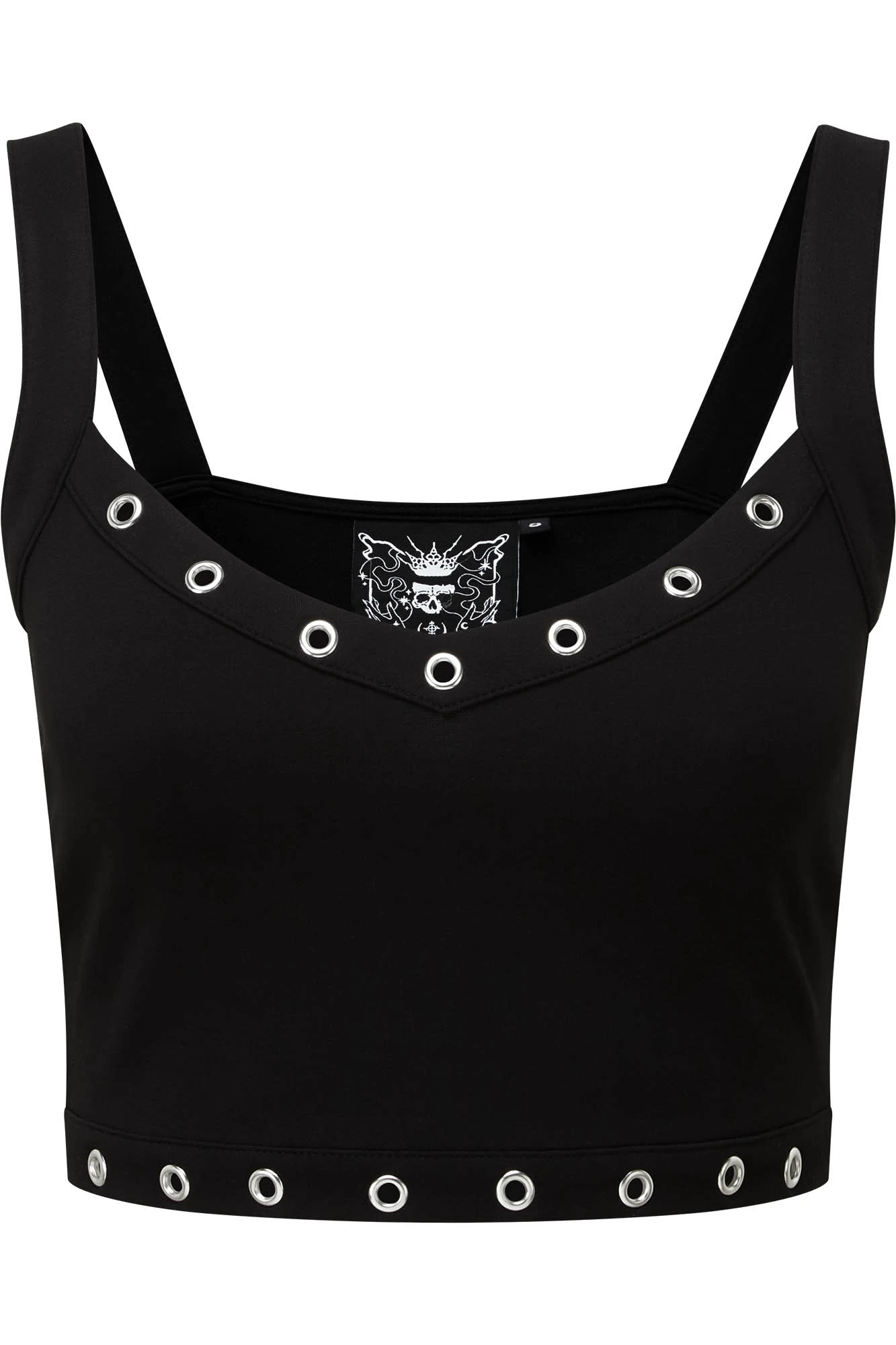 There is a new ghoul in town; cast yer eyes on the ‘Scene’ vest top – with a light but flattering fit – perfect for hot days/nights/whatever. Soft-touch jersey body with wide shoulder straps, decorative eyelets and cropped body.