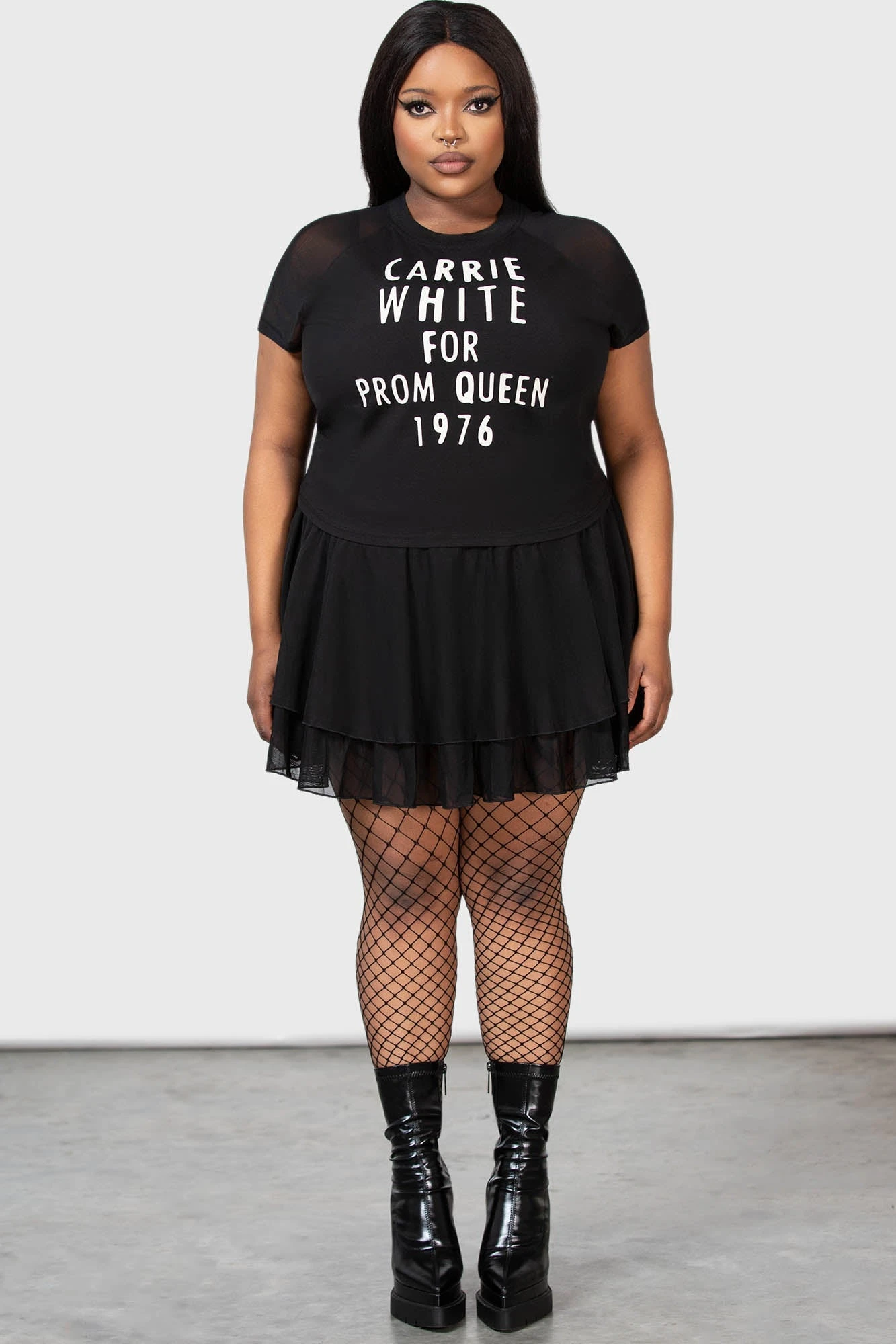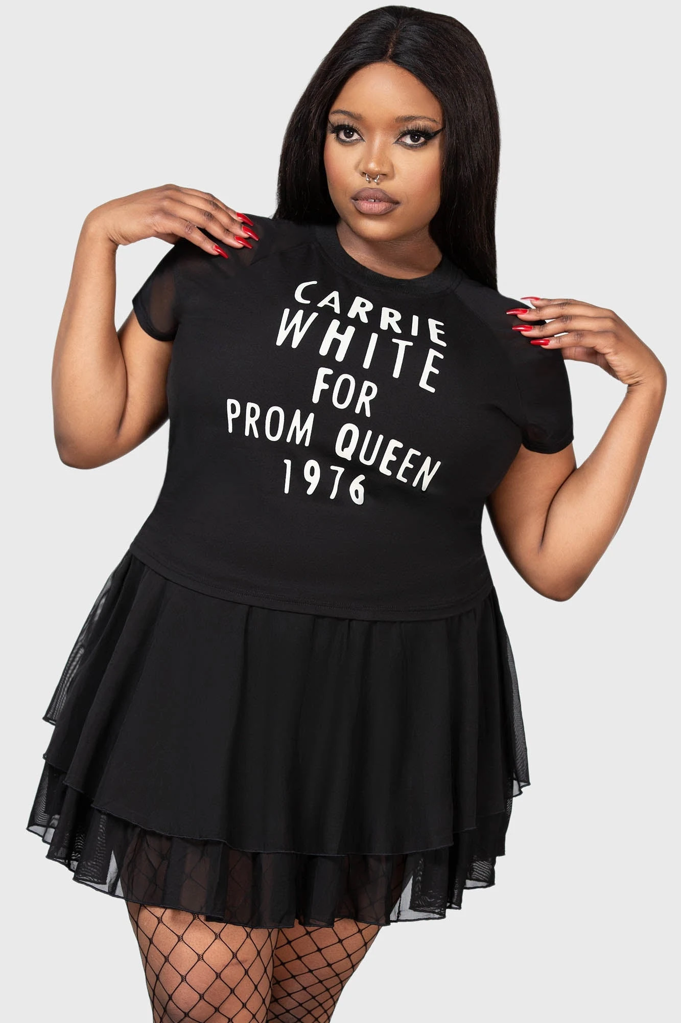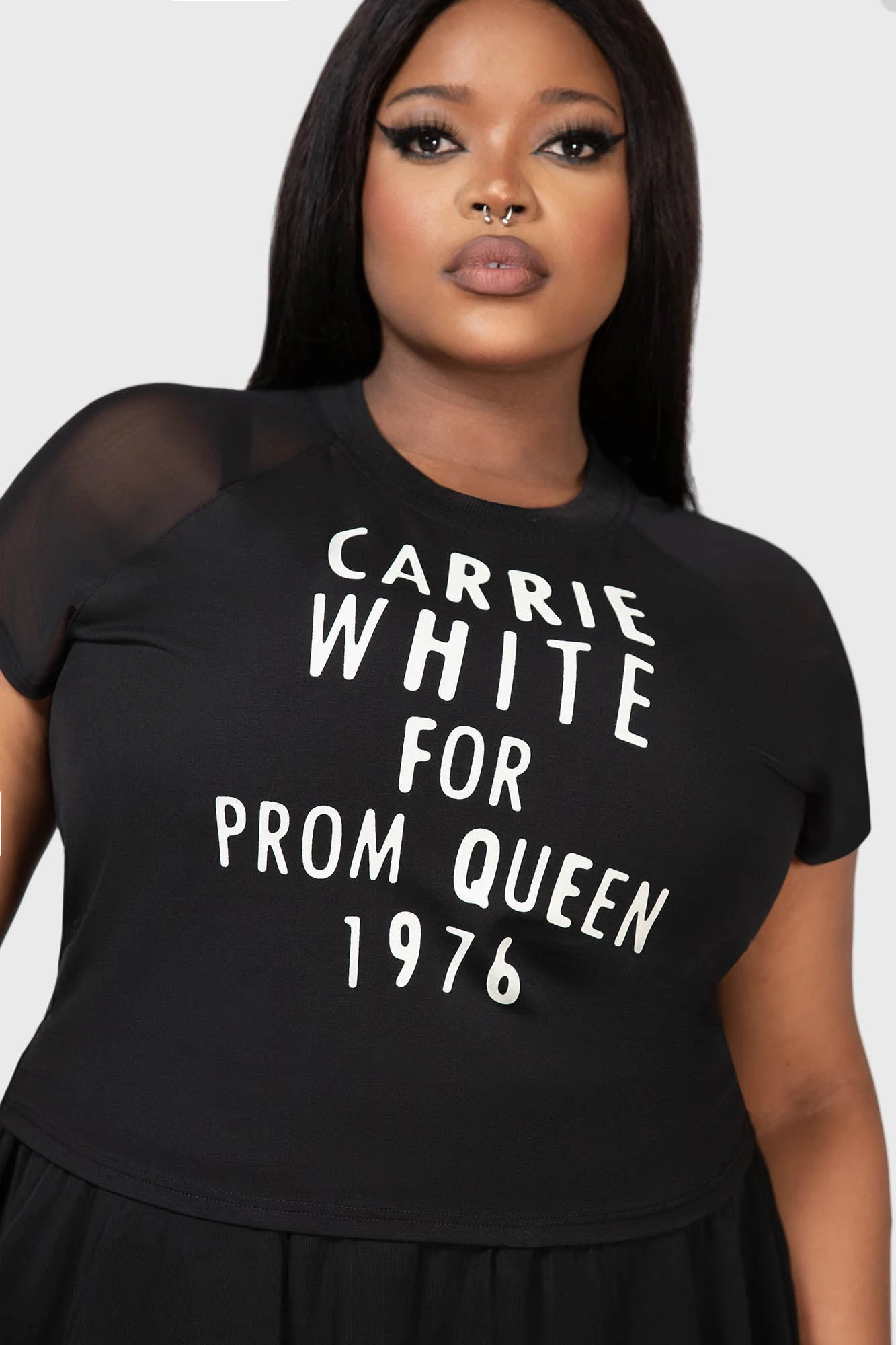 – Statement print which reads “Carrie White for prom queen 1976”.