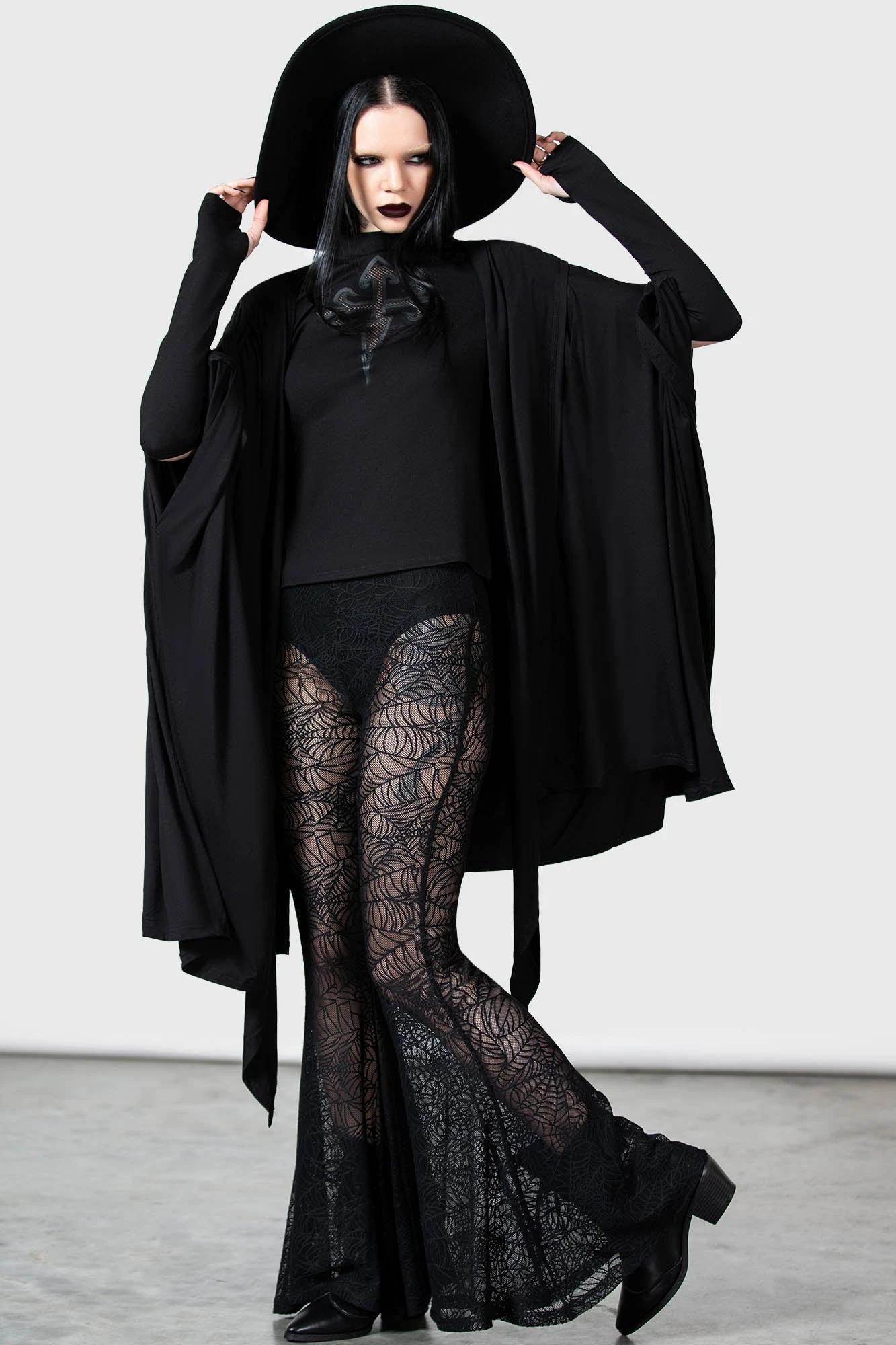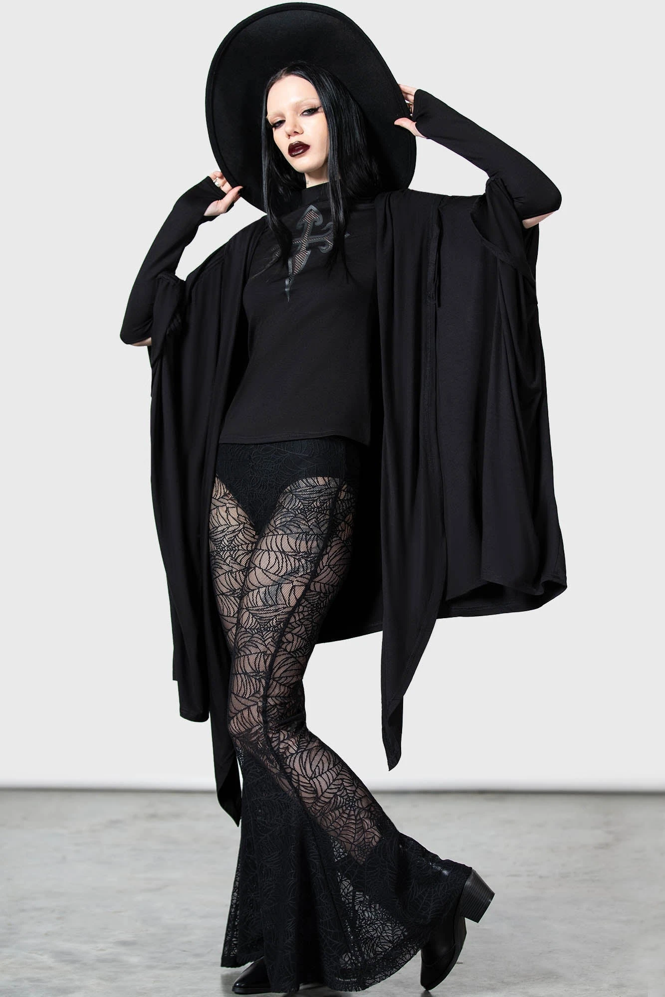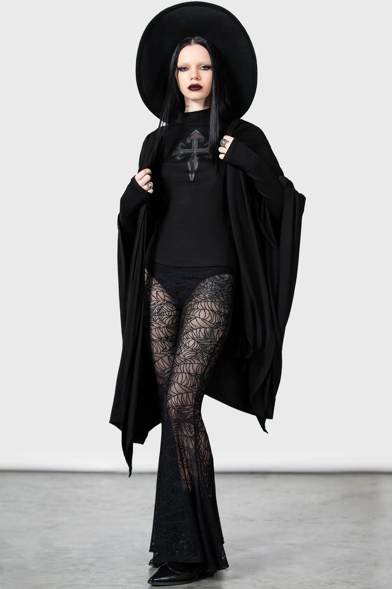 – Statement, custom spiderweb stretch lace.